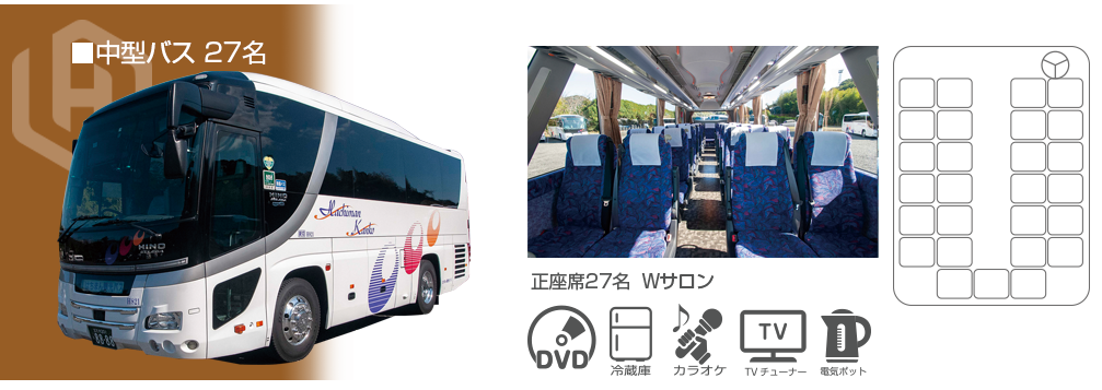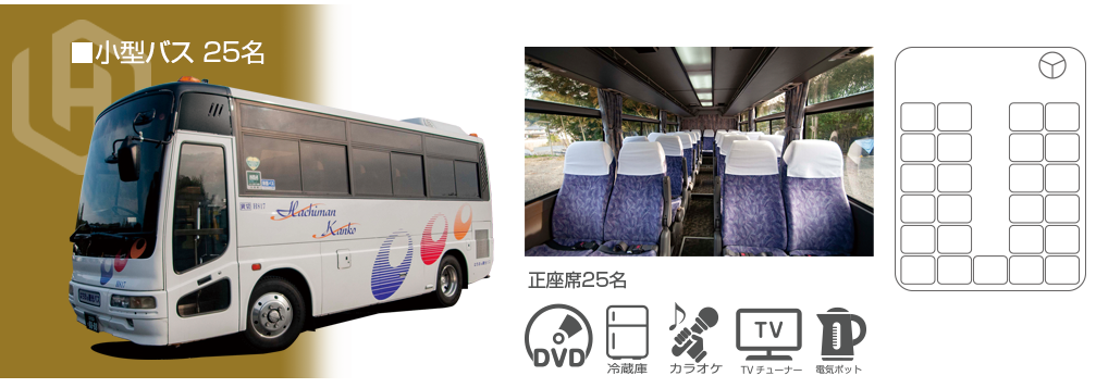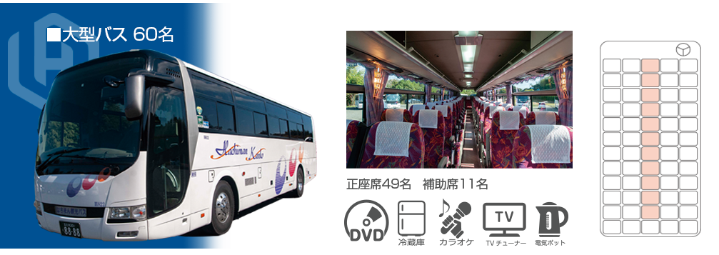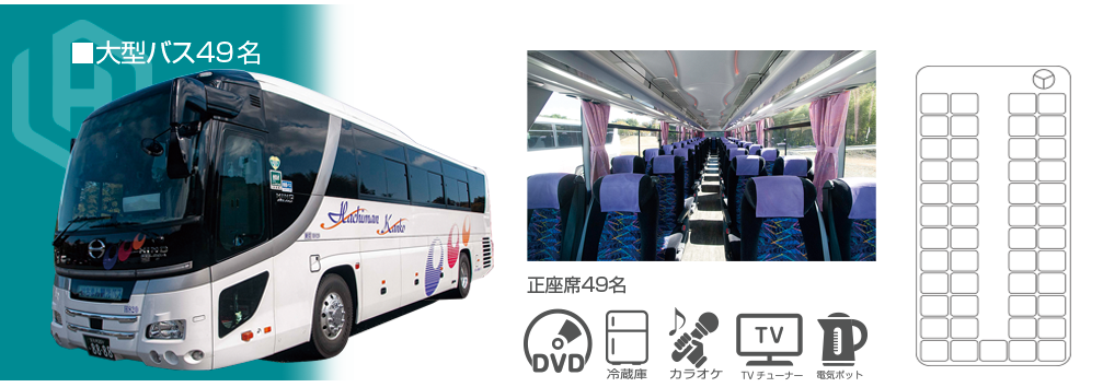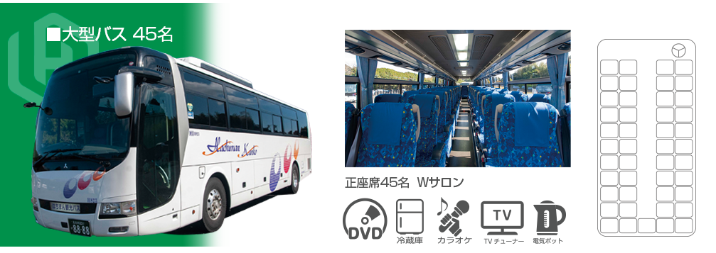 はちまん観光バス事業部は、お客様の快適な旅をサポートするために、最新の仕様を備えたバスを各種取り揃えています。確かな技術のドライバーによる、安心と信頼に包まれた旅をお約束します。