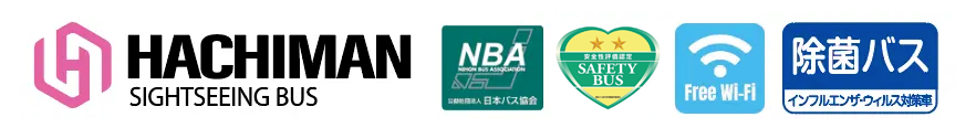 はちまん観光バスでは、シンボルマークステッカーをバス等に表示して皆様にお知らせするとともに、これまで以上に安全で安心・快適なサービスが提供できるよう引き続き努めてまいります。